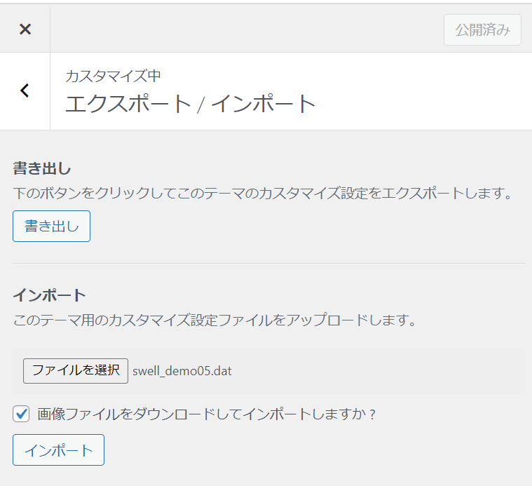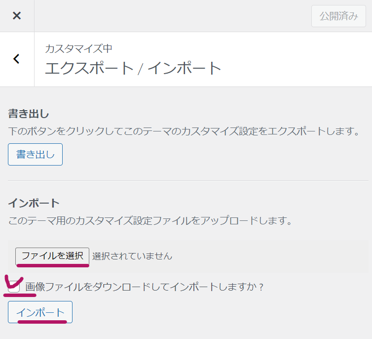 Customizer Export/Importを設定