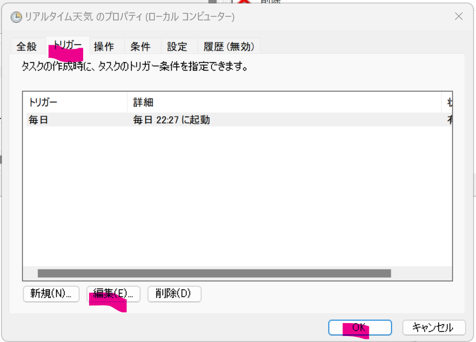 トリガー>編集>修正後>OK