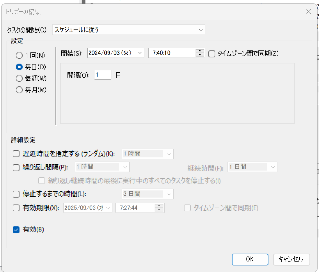 Windowsで自動定期実行(タイムスケジューラー)でバッチファイルの実行方法