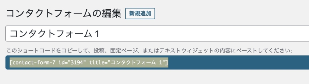 固定ページ>新規作成>タイトル記入(お問い合わせ)>ショートコード>コピペしたショートコードを入れる>公開