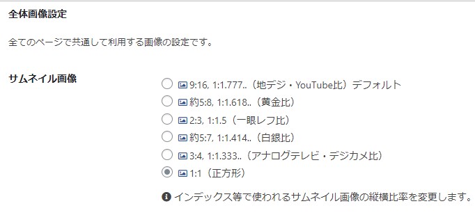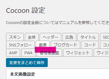 Cocoon設定 > 画像(タブ) > 全体画像設定 > サムネイル画像