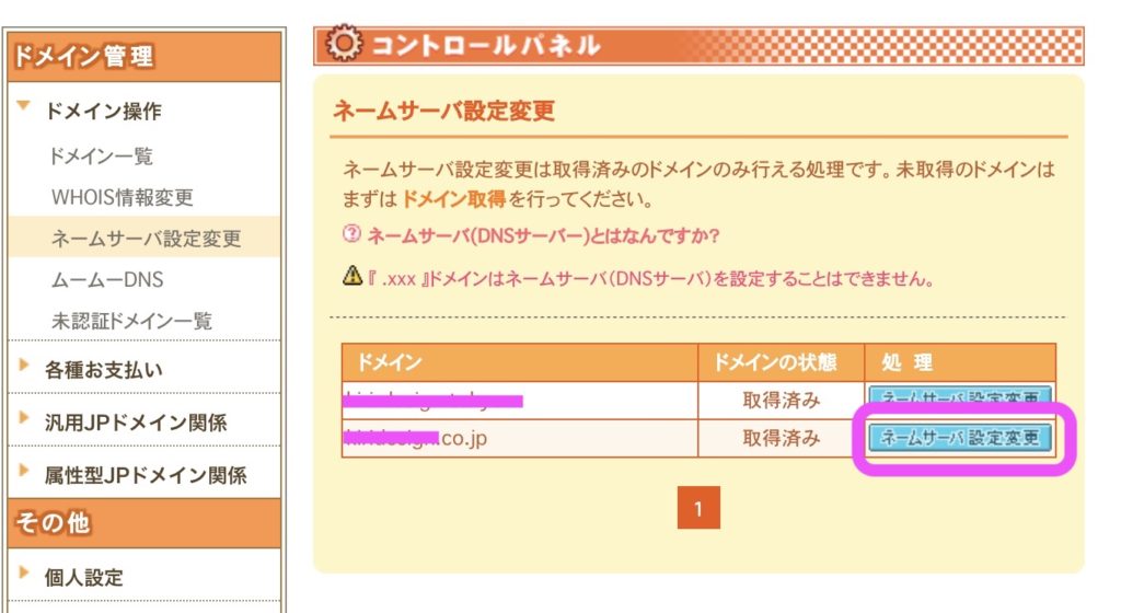 ムームードメインのネームサーバ設定変更