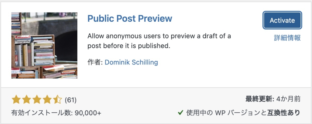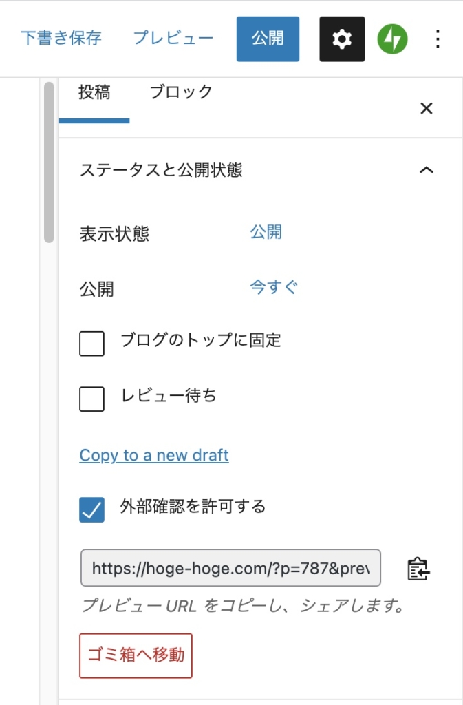 WordPressで公開前の記事を外部と共有出来るプラグイン【Public Post Preview】2021-11-17 Contents Public Post Previewのプラグインを入れて有効化する投稿作成画面の右側Public Post Previewのプラグインを入れて有効化する 投稿作成画面の右側 外部確認を許可するにチェックを入れると>urlがでてくる このurlをクライアントなどと共有しよう! WordPress,プラグイン